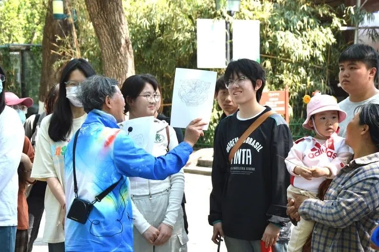 五龙壁前,志愿者拿出自己手绘的龙图案,开展互动环节,为师生们普及了精彩的龙知识。