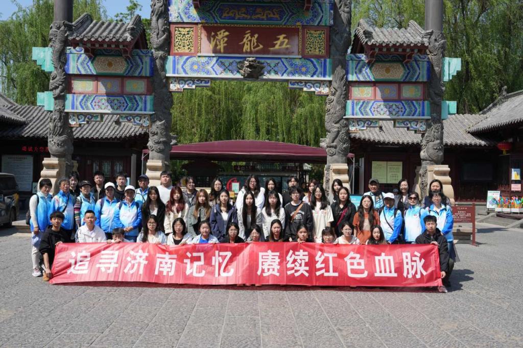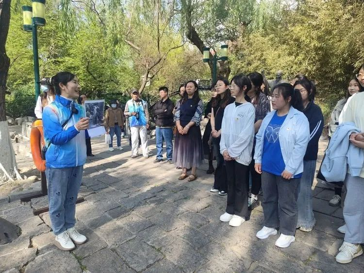 四月的五龙潭,春和景明,花开正好。4月12日下午山东特殊教育职业学院信息技术系团总支和山东艺术学院国际艺术交流学院团总支在五龙潭公园联合开展以“追寻济南记忆,赓续红色血脉”为主题的团建研学活动。老济南记忆馆志愿者为活动提供志愿服务。