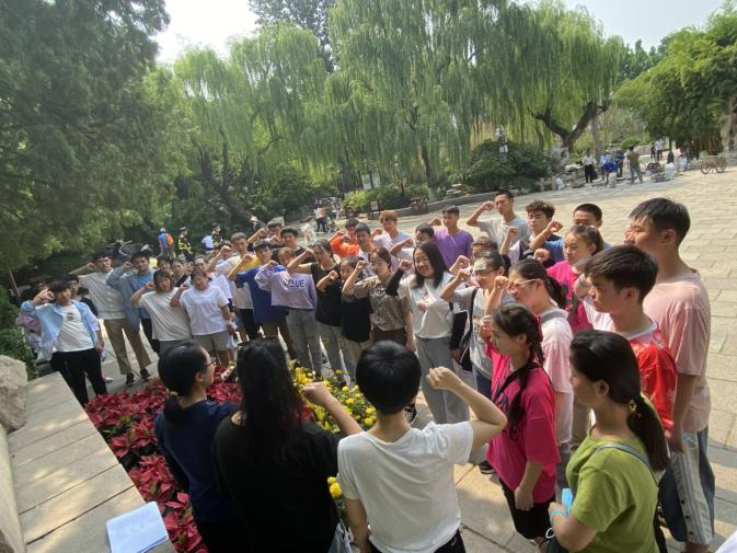 六月泉城,美景如织。在五龙潭公园美铭广场,艺术设计系党支部教师党员与团总支学生团员,认真学习了党史中有关邓恩铭、王尽美点燃信仰之光,将革命火种撒遍齐鲁大地的革命事迹。听障学生表示深受前辈们革命精神的震撼鼓舞,纷纷用手语表达对革命先烈的崇高敬意和深刻缅怀。系团总支带领团员重温入团誓词,进一步坚定了大家的理想信念,增强了团队意识和使命担当。