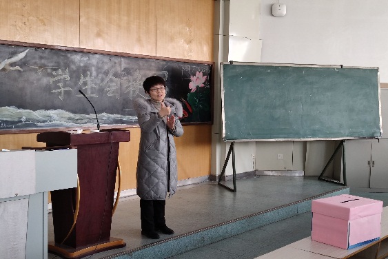 会议由郑璇同志主持。党支部书记李玲同志做竞选动员讲话,肯定了学生会的工作成绩并感谢全体成员的辛勤付出,希望同学们坚定政治方向,遵循社会主义核心价值观,真实评价、公正投票,选出心目中满意的能担当、负责任的主席团和部长人选。