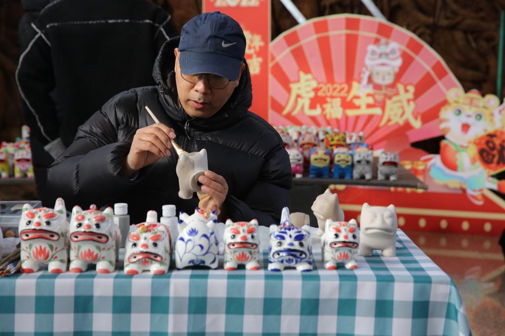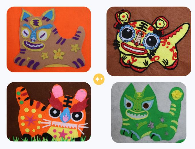 学生们以即将到来的虎年为创作主题,运用绘画、版拓、布艺、泥塑、陶瓷等工艺创作出了丰富多彩、形式各样的工艺美术作品。活动现场还提供了非遗项目体验,引来了众多师生的围观和体验。