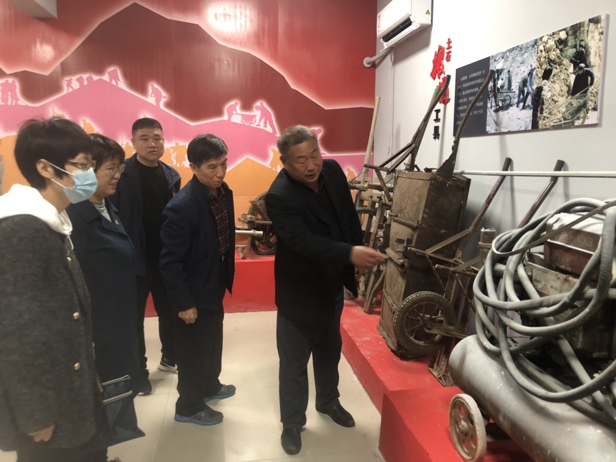 活动中,金刚纂村党支部书记马广业带领大家参观了村史展览馆。大家认真观摩了这些标注时代记忆的手推车、放炮警报器、暖水壶、钢钎、党员证等“老物件”,认真收看了金刚纂人战天斗地、开山辟路、打通下山通道的宣传片。一件件实物、一幅幅图片全方位的展示了金刚纂人自力更生、艰苦奋斗的愚公移山精神。