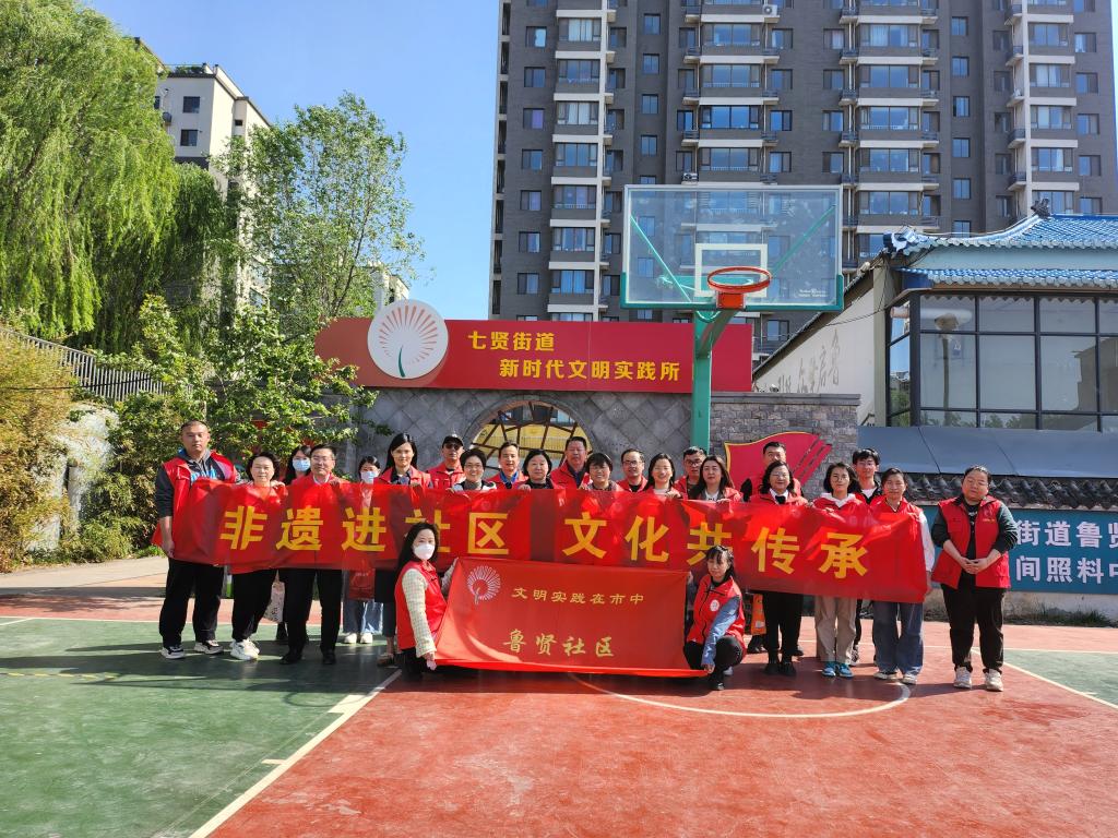 综合三党支部志愿者们与鲁贤社区居民、七贤实验幼儿园师生讲解了非物质文化遗产保护与传承的意义。