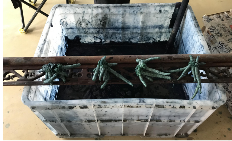蜡染小组在切磋技艺。染布作坊开起来,这晾的是啥呀?好吃吗?
