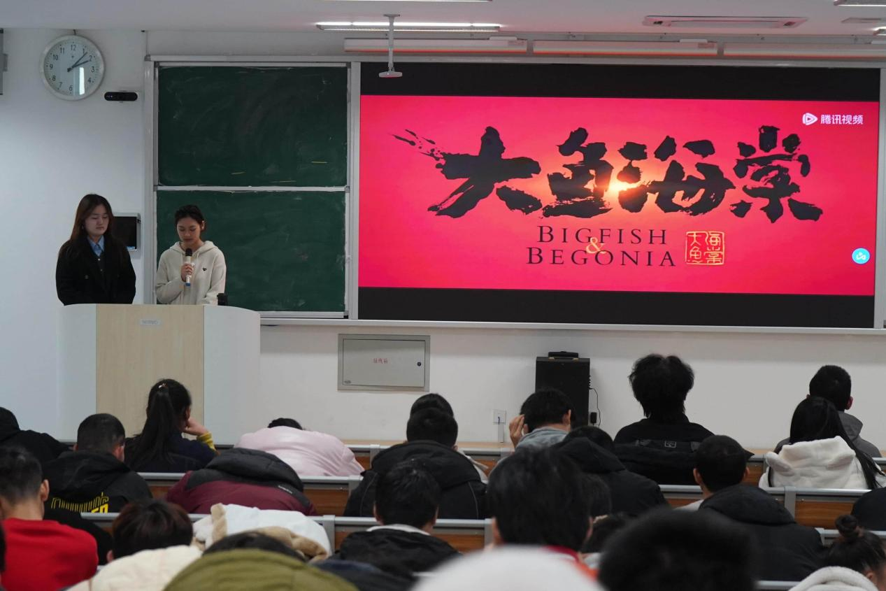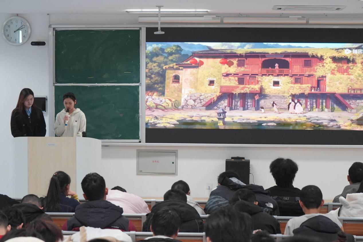 本次活动在形式与内容上均进行了深度打磨。针对视障群体“听影”的特殊需求,视频讲解员采用专业的口述影像技术,将影片中福建土楼的宏大建筑、椿与鲲的细腻互动、色彩斑斓的海底奇景等一系列图景转化为具象化的“听觉语言”。这种“画外音”与原片对白的精准配合,有效填补了视觉信息的空白,让无声的画面变得“掷地有声”。观影现场,同学们随着剧情的跌宕起伏,时而屏息凝神,时而会心莞尔,与电影角色情感共振。