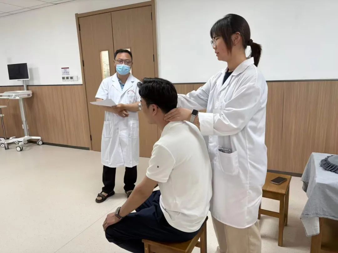 “这不仅是一次技能检验,更是实习生职业成长的重要赋能环节。” 毛树文主任在考核中不仅进行严谨评判,更针对手法细节优化、力道渗透技巧、医患沟通策略等方面,为实习生们提供了 “精准且温暖的个性化指导”。他高度肯定了实习生们 “克服挑战、精益求精” 的学习精神,更对其展现出的专业潜力表示赞赏。