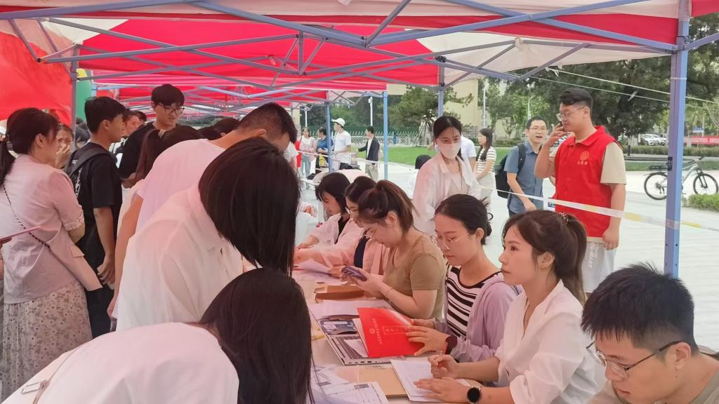 与此同时,志愿者们也在各个报到点热情迎接新生,他们统一身着红马甲,脸上洋溢着灿烂的笑容,积极引导新生们进行报到,回答他们的各种疑问,提供必要的帮助。尤其面对视力障碍学生,志愿者们提供了一对一的陪同服务,从校门口引导起,一直送到宿舍止。这样的安排不仅让新生们感受到关爱与支持,也体现了系部对视障学生的关注与理解。