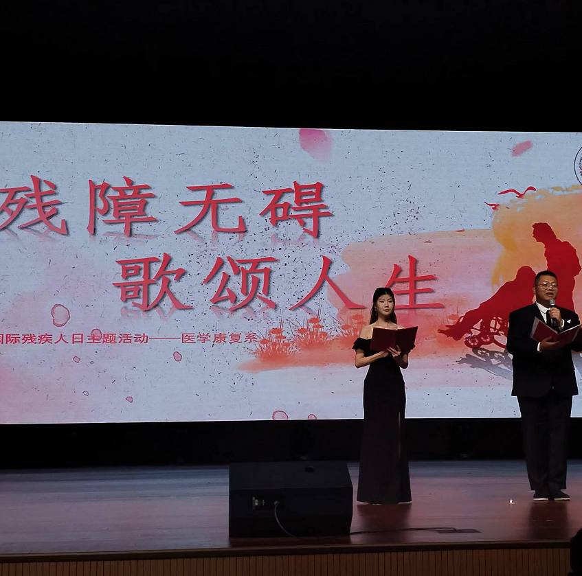 为庆祝第三十三个国际残疾人节,12月3日晚,医学康复系在礼堂隆重举办了一场以为“残障无碍,歌颂人生”的精彩演出。医学康复系师生代表300余人,共同见证了这一意义非凡的时刻。