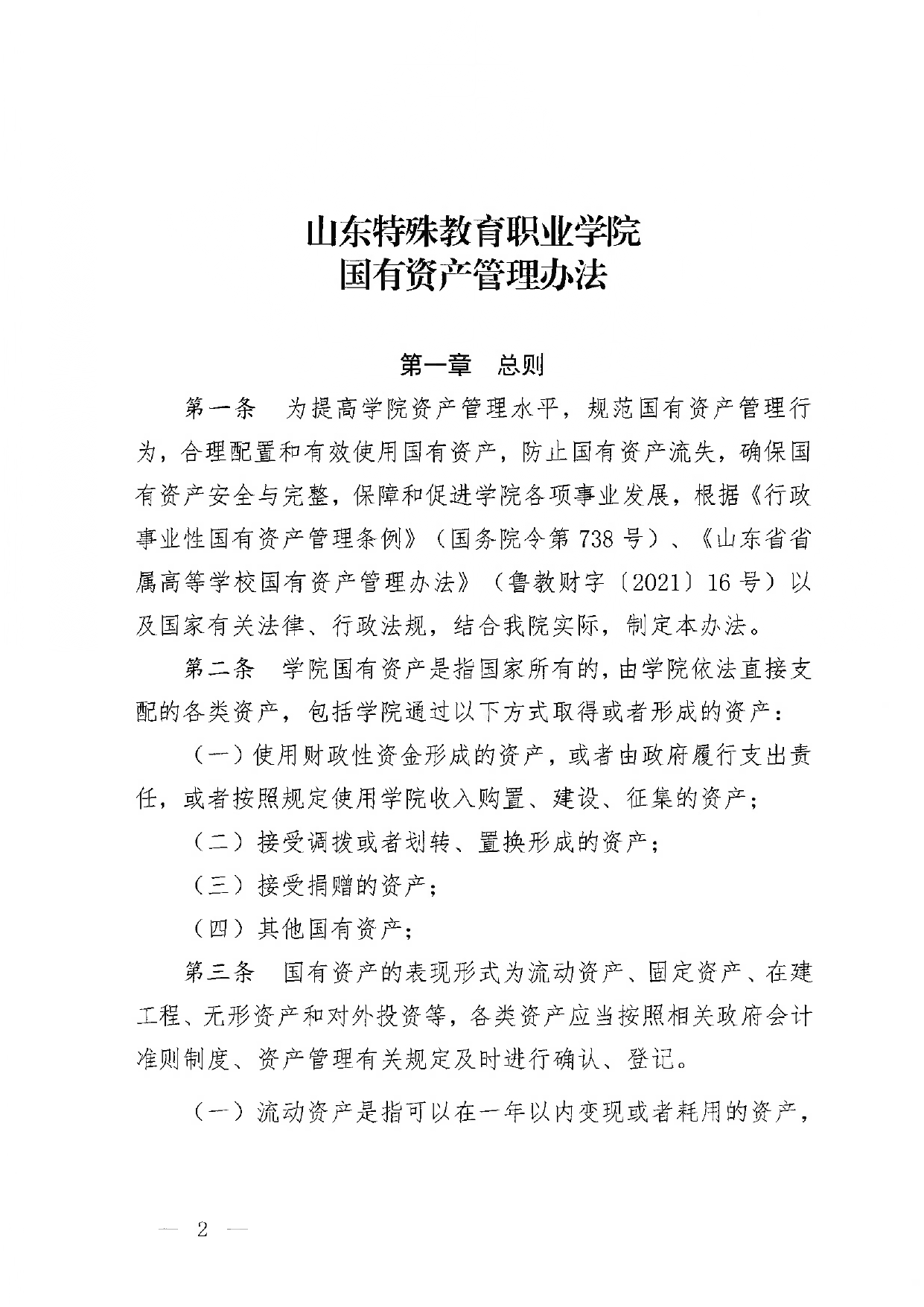山东特殊教育职业学院国有资产管理办法