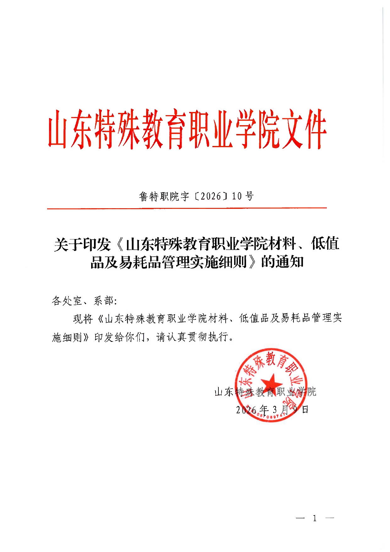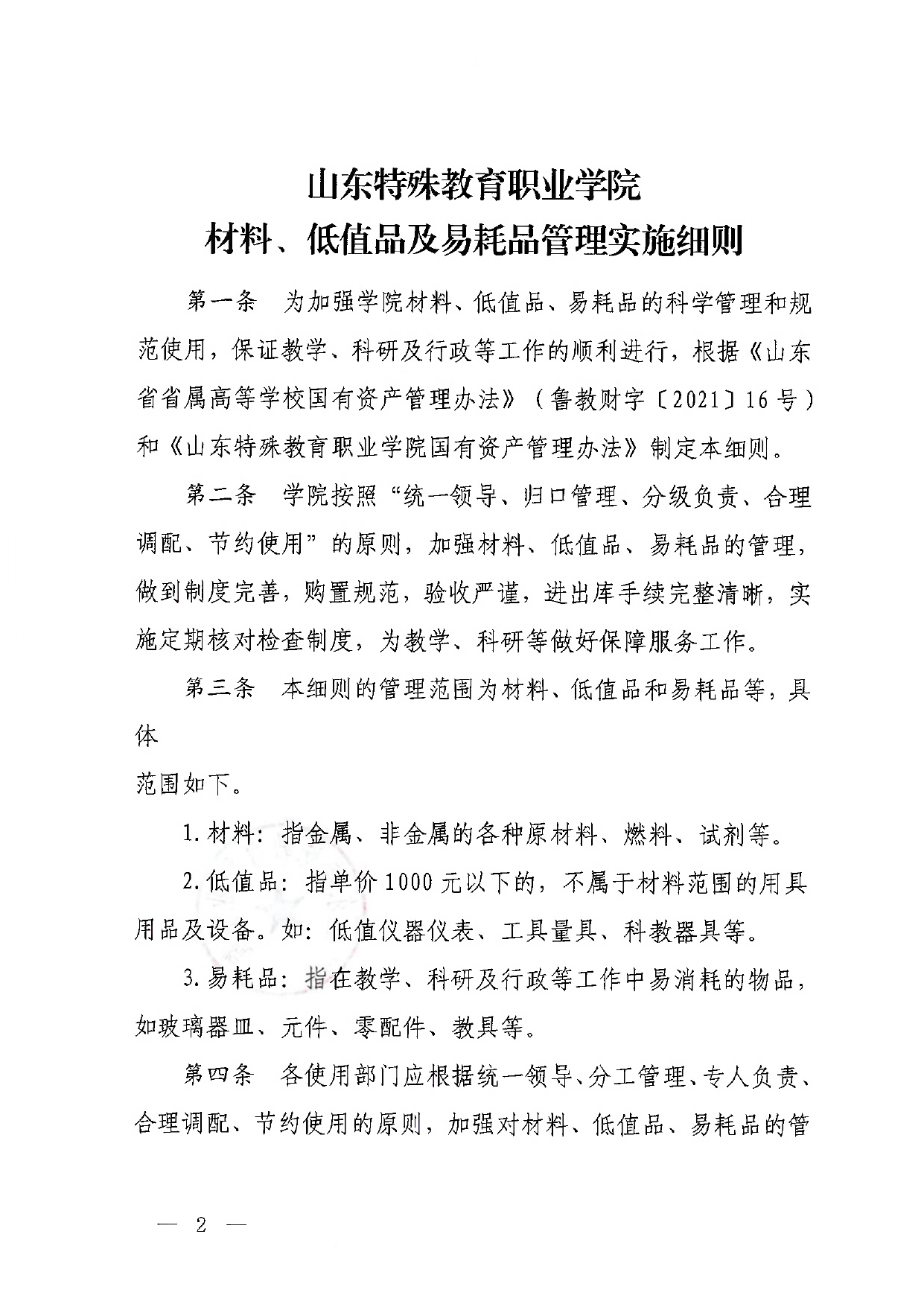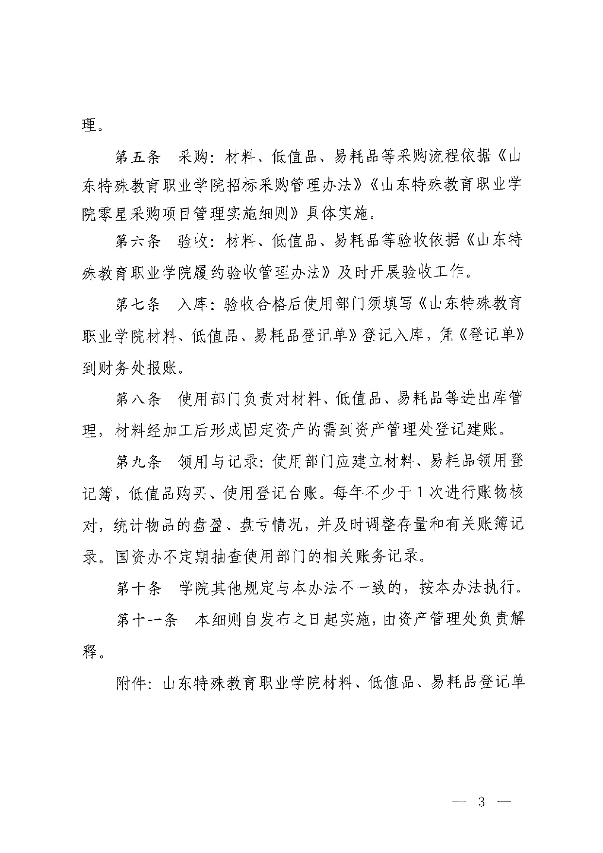山东特殊教育职业学院材料、低值品及易耗品管理实施细则