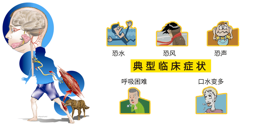 1.狂躁型:约占病例的2/3。患者会出现意识模糊、极度恐惧、恐水、怕风、阵发性咽肌痉挛、流涎、多汗、心率加快、血压增高等症状。他们对水产生极度的恐惧,即使听到水声或看到水的影像,都可能引发严重的咽肌痉挛,这也是狂犬病“恐水”名称的由来。