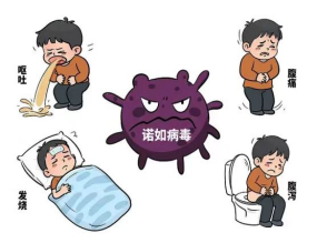 诺如病毒感染后的潜伏期最短12小时,最长72小时,通常2天内就会发病。儿童感染诺如病毒易出现呕吐症状,成人多出现腹泻、发热、畏寒、头痛、肌肉酸痛等症状。腹泻次数从几次到数十次不等,粪便稀水样,无脓血样便。诺如病毒感染是一种自限性疾病,一般2—3天后即可自行康复。不过如果出现脱水等情况,应立刻就医