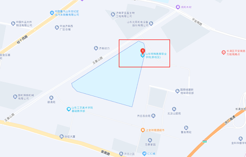 地址:济南市长清区平安街道玉皇山路以东、凤凰山路以西,山东特殊教育职业学院新校区
