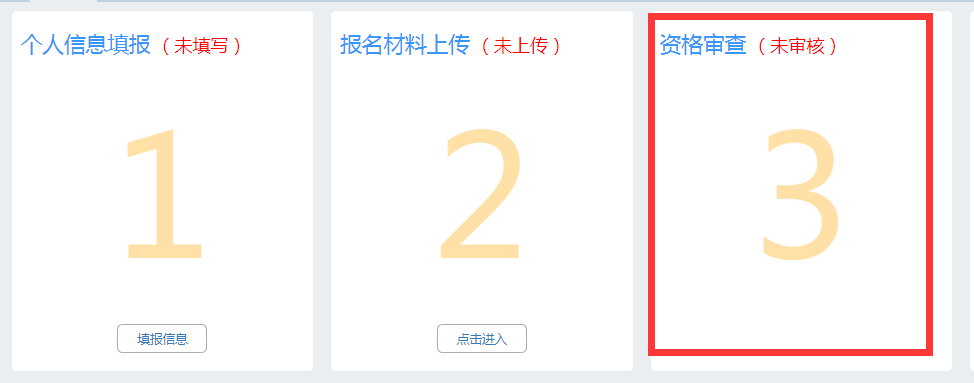 注意:只有“个人信息填报”完成提交、报名材料上传成功后,报名才算完成。