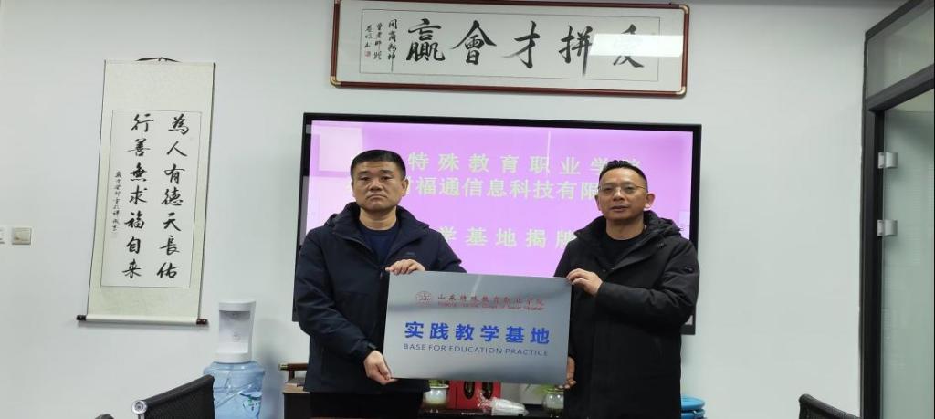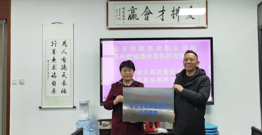 在苏州财福通信息科技有限公司,黄艳华对公司为毕业生提供的发展平台表示感谢,并简要介绍了学院的特色专业、人才培养等基本情况,希望双方整合优势资源,在毕业生实习实训、就业安置等方面开展更加紧密的合作,互惠共赢,携手做好残疾学生高质量充分就业工作。同时,校企双方为“山东特殊教育职业学院实践教学基地”“山东特殊教育职业学院毕业生高质量就业示范基地”揭牌。