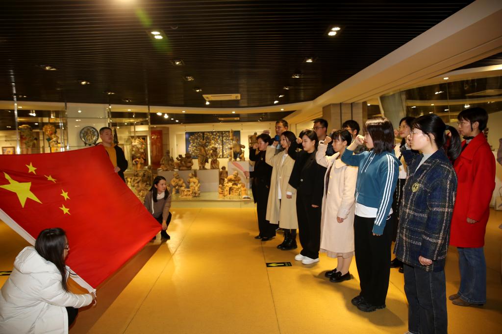 开班仪式后,新进人员参观了校史馆。在校史馆,教务处处长顾丽霞带领新入职教师在鲜艳的五星红旗前进行了庄严的宣誓。