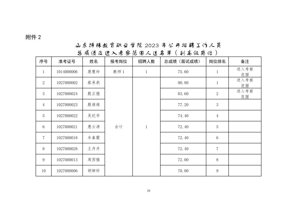 2.山东特殊教育职业学院2023年公开招聘工作人员总成绩及进入考察范围人选名单(副高级岗位)
