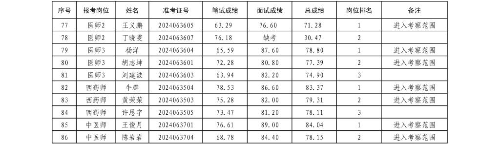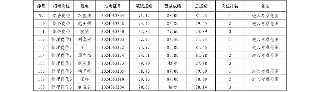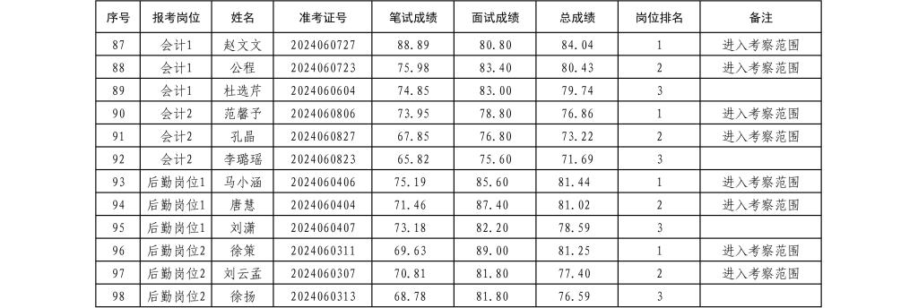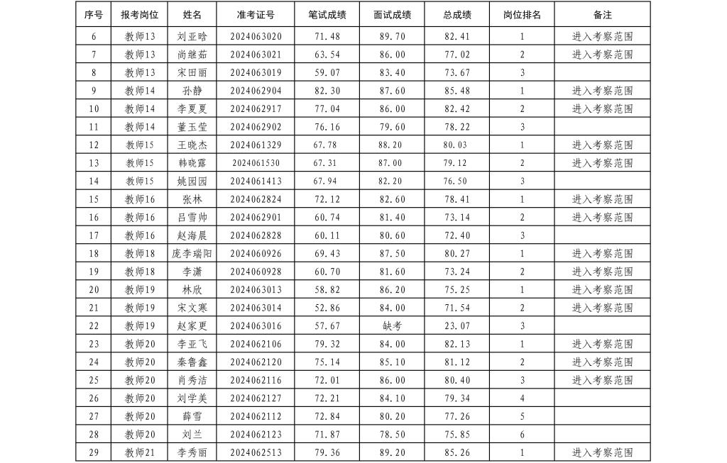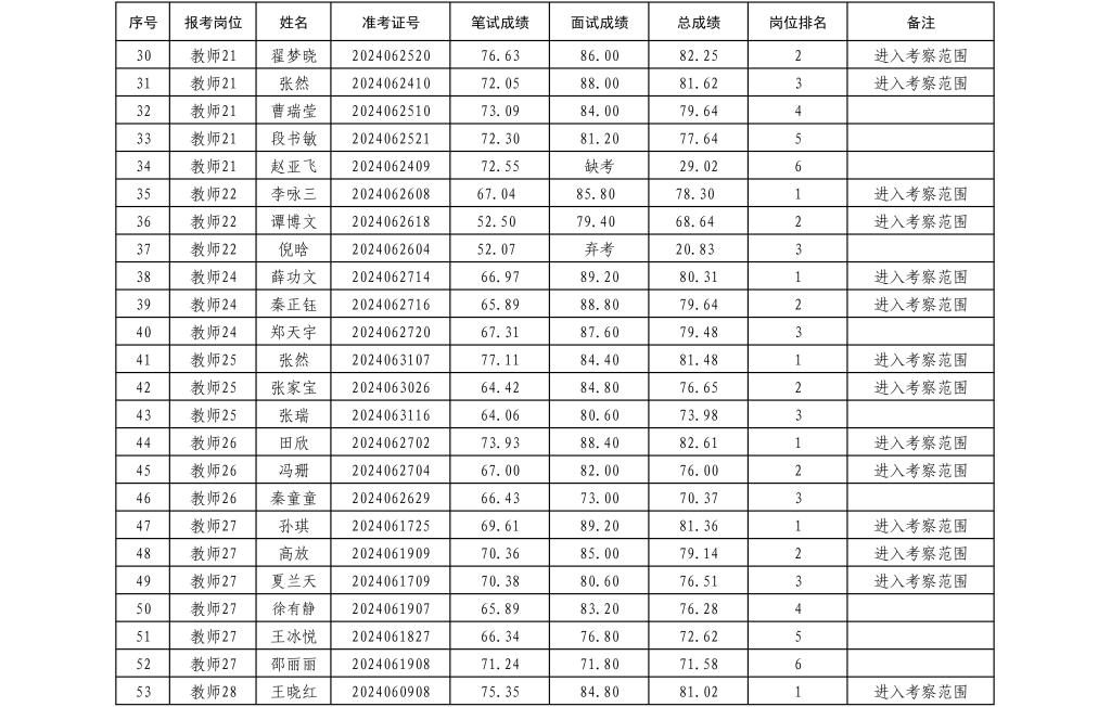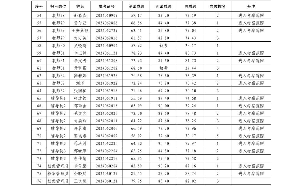 根据事业单位公开招聘有关要求及《山东特殊教育职业学院2024年公开招聘工作人员简章》规定,现将我院2024年公开招聘进入面试范围人员考试总成绩及考察范围人选予以公告。